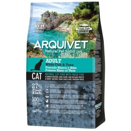 Arquivet adult pescado blanco y atun 1.5 kg Proteína bruta: 31,5% Grasa bruta: 15,5% Omega 6: 3% Omega 3: 1% COMPOSICIÓN: Pescado blanco fresco (27%). Arroz. Pescado blanco y atún deshidratados. Guisantes. Gluten de maíz. Maíz. Aceite de pollo. Trigo. Levaduras. Hidrolizado de hígado de ave. Proteína de arroz. Pollo deshidratado. Pulpa de remolacha. Carbonato cálcico. Manzana deshidratada. Brócoli deshidratado. Zanahoria deshidratada. Achicoria (fuente de FOS). Yucca schidigera. COMPONENTES ANALÍTICOS: Proteína bruta 31,50%, aceites y grasas brutos 15,50%, ácidos grasos omega-6 3%, ácidos grasos omega-3 1%, fibras brutas 2,50%, ceniza bruta 7,80%, calcio 1,35%, fósforo 1,10%, humedad 9%. ADITIVOS NUTRICIONALES: Vitamina A 18.000 UI/kg, vitamina D3 1.450 UI/kg, vitamina E 175 mg/kg, hierro (sulfato ferroso monohidratado) 68 mg/kg, yodo (yoduro potásico) 3,20 mg/kg, cobre (sulfato cúprico pentahidratado) 9 mg/kg, manganeso (sulfato manganoso monohidratado) 7,50 mg/kg, zinc (óxido de zinc) 120 mg/kg, selenio (selenito de sodio) 0,12 mg/kg, taurina 970 mg/kg. ADITIVOS TECNOLÓGICOS: Extractos de tocoferol de aceites vegetales 230 mg/kg. Reguladores de la acidez: Bisulfato sódico 4.000 mg/kg.