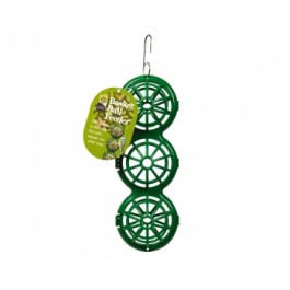 Comedero de jardín para aves sivestres de JACOBI JAYNE especialmente diseñado para albergar 3 bolas de sebo de 100 g SB-6 o SB-50 de GRANA. Fabricado en plástico resistente, con una pequeña asa para colgar. Seguro para las aves (no hace falta usar rejillas), económico y fácil de usar. Las bolas se colocan en su interior. (las bolas de sebo no están incluidas). Se puede colocar más de uno enlazados por el pequeño gancho superior.