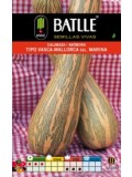 Frutos grandes, alargados de 50-60 cms., cilíndricos y con el extremo abultado en forma de maza. Color verde oscuro con manchas alargadas que al madurar dan un color verde anaranjado. La pulpa es muy consistente de color naranja fuerte, muy apreciada por su gran producción y sabor.