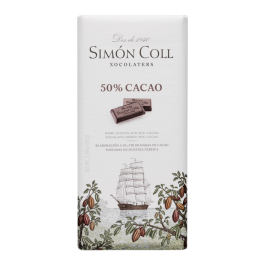 Chocolate 50% cacao 85g Simon Coll Fórmula 50% cacau. Elaborada amb ingredients naturals i de qualitat, seguint el mètode tradicional de doble torrat de cacau característic de la fórmula Bitter de la marca.