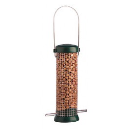 Comedero de jardín para aves sivestres tipo tubular de JACOBI JAYNE, con malla especial para cacahuetes. Con base y tapa de plástico resistente a la intemperie. Se recomienda rellenar con cachuetes de alta calidad GRANA-C. Altura: 200 mm; Capacidad: 0,5 LTS