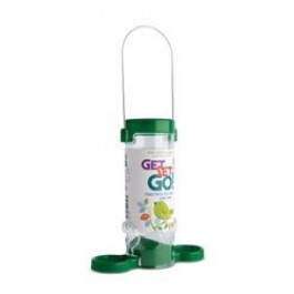 Comedero de jardín para aves sivestres tipo tubular de JACOBI JAYNE. Con base, accesos y tapa de plástico resistente a la intemperie.