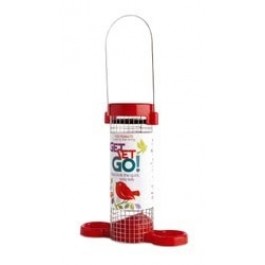 Comedero de jardín para aves sivestres tipo tubular de JACOBI JAYNE con malla especial para cacahuetes. Con base, accesos y tapa de plástico resistente a la intemperie.
