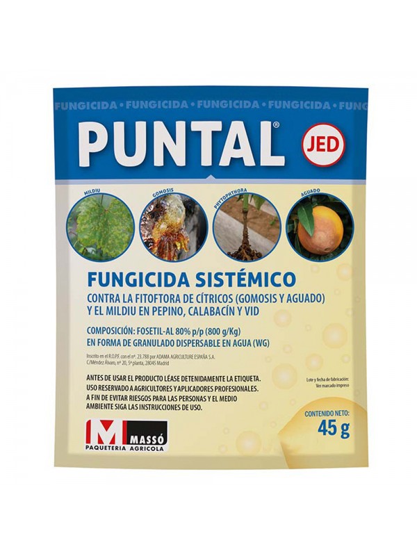 Fungicida sistémico (traslocación ascendente y descendente) con efecto preventivo y curativo para el control del mildiu, fitóftora, gomosis y aguado. Está admitido en Jardinería Exterior Doméstica (JED), es decir, se puede aplicar sin carné de aplicador de productos fitosanitarios de uso profesional.
