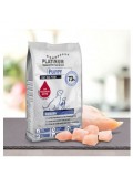 Pollo fresco (73%), arroz, grasa de pollo, harina de pollo, pescado fresco seco, pulpa de remolacha secada, hidrolizado de harina de pollo, aceite de salmón, levadura de cerveza, grasa de lino prensado en frío, aceite de oliva prensado en frío, cloruro de potasio.