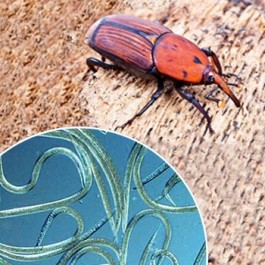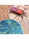Los nemátodos se desplazan entre las anfractuosidades de las palmeras en busca de víctimas que parasitar. Cuando las encuentran, penetran en sus cuerpos a través de las vías naturales y se multiplican en su interior, causando su muerte.