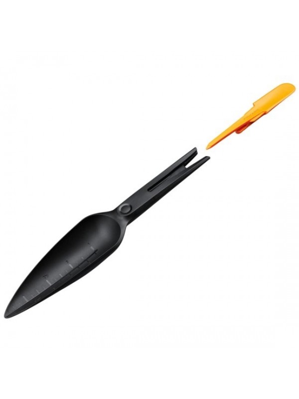 La sembradora manual de Fiskars ofrece cuatro elementos esenciales para la siembra en una herramienta ligera y duradera