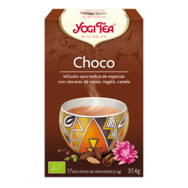 Una deliciosa y tierna mezcla de especias de chai tradicional y cáscara de cacao. YOGI TEA® Choco ha sido de los favoritos durante años. El cacao se une con el regaliz dulce, la canela, el jengibre picante y el cardamomo en una mezcla celestial. Siéntate, toma un sorbo y disfruta del maravilloso aroma del chocolate. La mejor forma de tomarlo es endulzado y con un poco de leche, animal o vegetal. La esencia de esta infusión es: “Deliciosa indulgencia”.