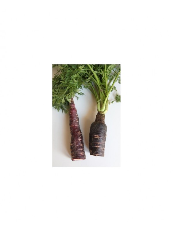 Esta variedad rústica es muy dulce y de textura crujiente, tiene la raíz de color morado intenso precioso con el nervio ligeramente blanquecino.